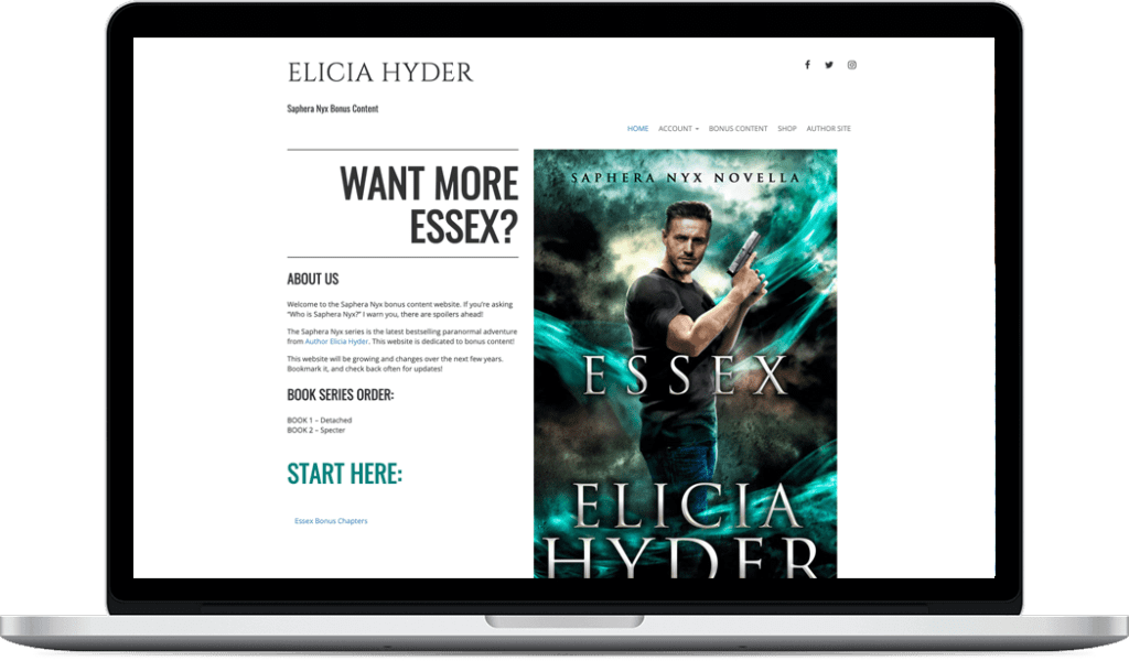 I started my career writing serialized fiction. I’m getting back to my roots with an entire website dedicated to Saphera Nyx bonus content, including chapters of ESSEX. It picks up where Detached left off! Read it here and check back often for updates. The website will be growing and changing over the next few weeks!